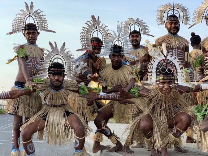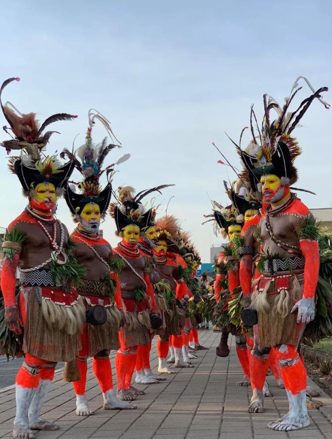 当地时间11月15日下午,身着民族服装的当地民众就来到了莫尔斯比港杰克逊机场,等待习主席专机到来。