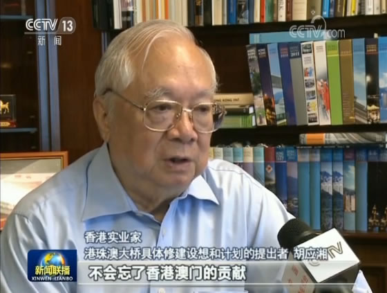 香港实业家 港珠澳大桥具体修建设想和计划的提出者 胡应湘:我印象最深刻的就是,习主席说国家人民不会忘了香港澳门的贡献。不但是肯定,而且感谢。这个对我,我是相当感动的。