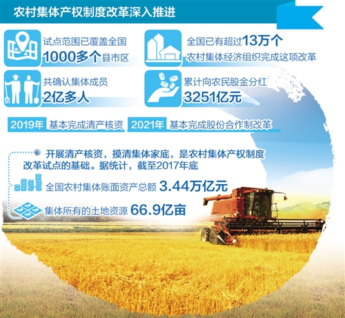 集体经济组织首次获得“身份证”,是农村集体产权制度改革成果的缩影。农业农村部部长韩长赋表示,目前,农村集体产权制度改革试点范围已覆盖全国1000多个县市区;全国已有超过13万个农村集体经济组织完成这项改革,共确认集体成员2亿多人,累计向农民股金分红3251亿元;按照时间表,2019年基本完成清产核资,2021年基本完成股份合作制改革。
