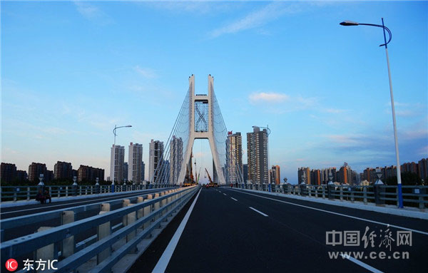2018年9月,横跨北京通州与河北燕郊的潮白河大桥工程进入收尾阶段。(图片来源:东方IC)