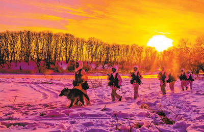 北部战区陆军某边防旅官兵在零下20摄氏度的严寒天气巡逻执勤。 |