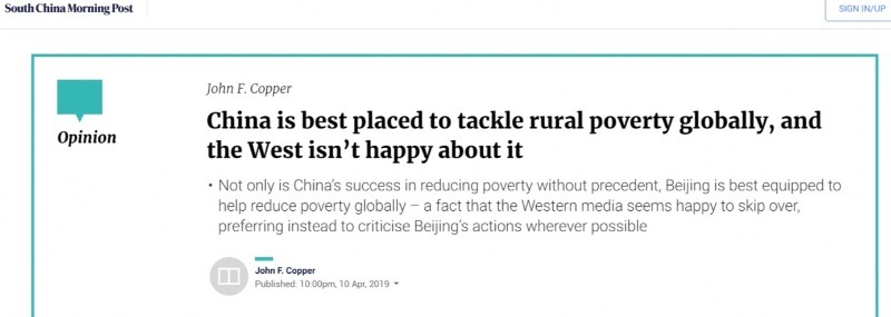 文章作者美国田纳西州孟菲斯市罗德学院约翰·F. 库珀(John F. Copper)教授表示,事实上,中国在减贫领域取得的成就令人难以置信,中国经过不懈努力,有七亿多贫困人口成功脱贫。