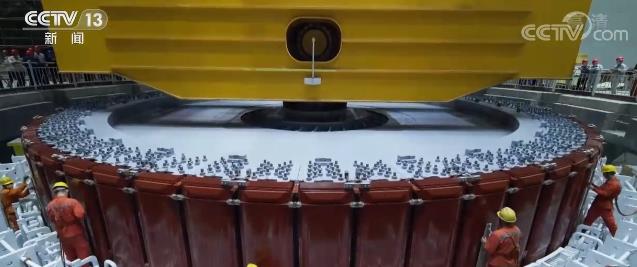国家重大工程乌东德水电站12号机组核心部件今天(13日)成功完成吊装,这标志着乌东德水电站最后一台机组安装进入总装阶段,向全部机组投产发电目标迈进。 乌东德水电站位于四川省会东县和云南省禄劝县交界的金沙江干流河道上,以发电为主,兼顾防洪、航运等任务。电站共安装了12台单机容量85万千瓦水轮发电机组,是目前世界上已投产最大的水轮发电机组。
