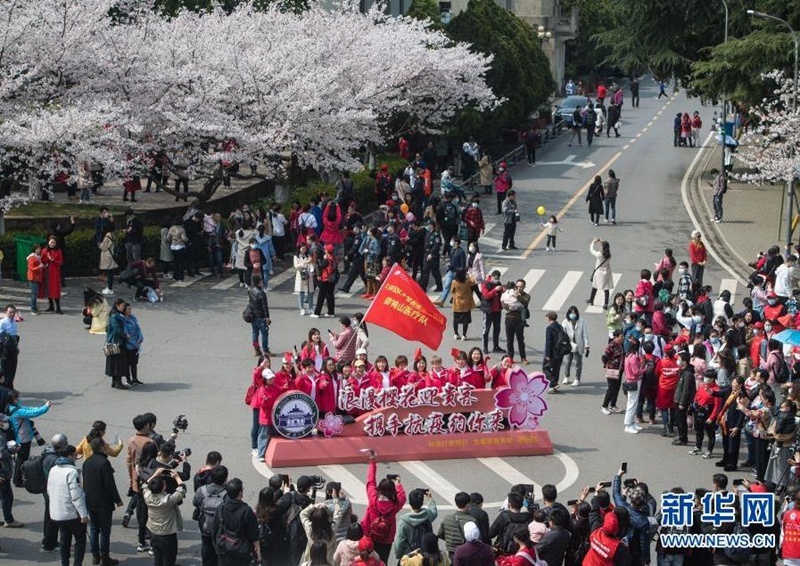 “待到樱花盛开时,期待与君再相逢。”这是去年春天湖北人民向全国人民发出的深情邀约。13日上午九点,“樱约而至感恩有你”武汉大学致敬抗疫英雄赏樱专场活动欢迎仪式在武大校园内启动。武大校长窦贤康表示,武大去年就决定,在今年春天,选择樱花盛开最美的两天,专门请医护人员来武大赏樱。