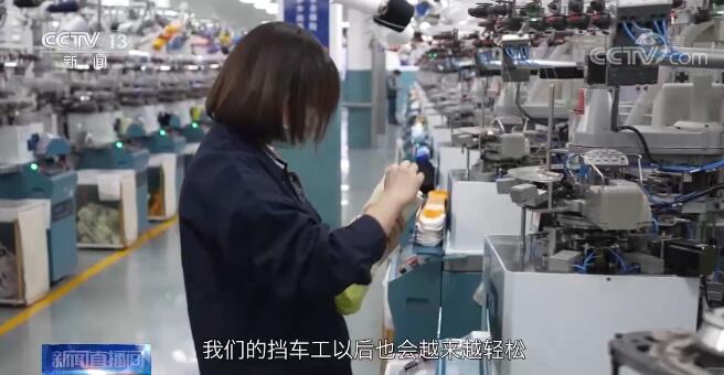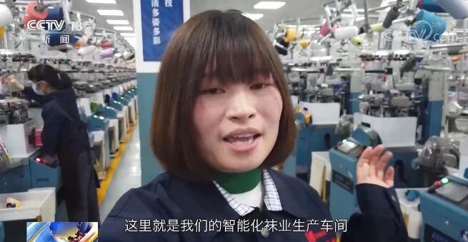 大家好,我叫文园,是浙江凯诗利科技有限公司的一名纺织工人,这里就是我们的智能化袜业生产车间。我爸妈他们都是老一辈做袜子的,像以前做袜子的话,这个袜子是要用手翻来翻去的,我看他们经常手上贴着胶布,看得我都很心慌。我们现在用的是全新的数字化袜机,把以前很多的步骤都已经省略掉了,所以我现在不会担心会伤手,大家看下我的手,现在是一点伤口都没有,也不会红,所以我现在干得挺开心的。