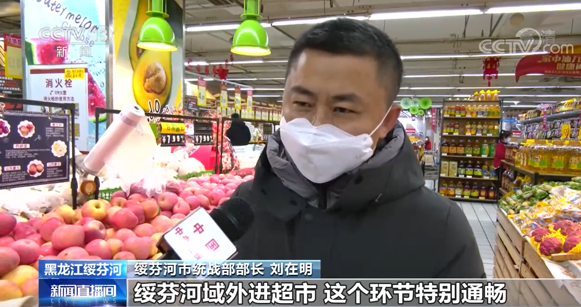 绥芬河市统战部部长 刘在明:绥芬河域外进超市,这个环节特别通畅,从超市到百姓家,我们又想了很多办法,应该现在整个供应是还是比较充足的。