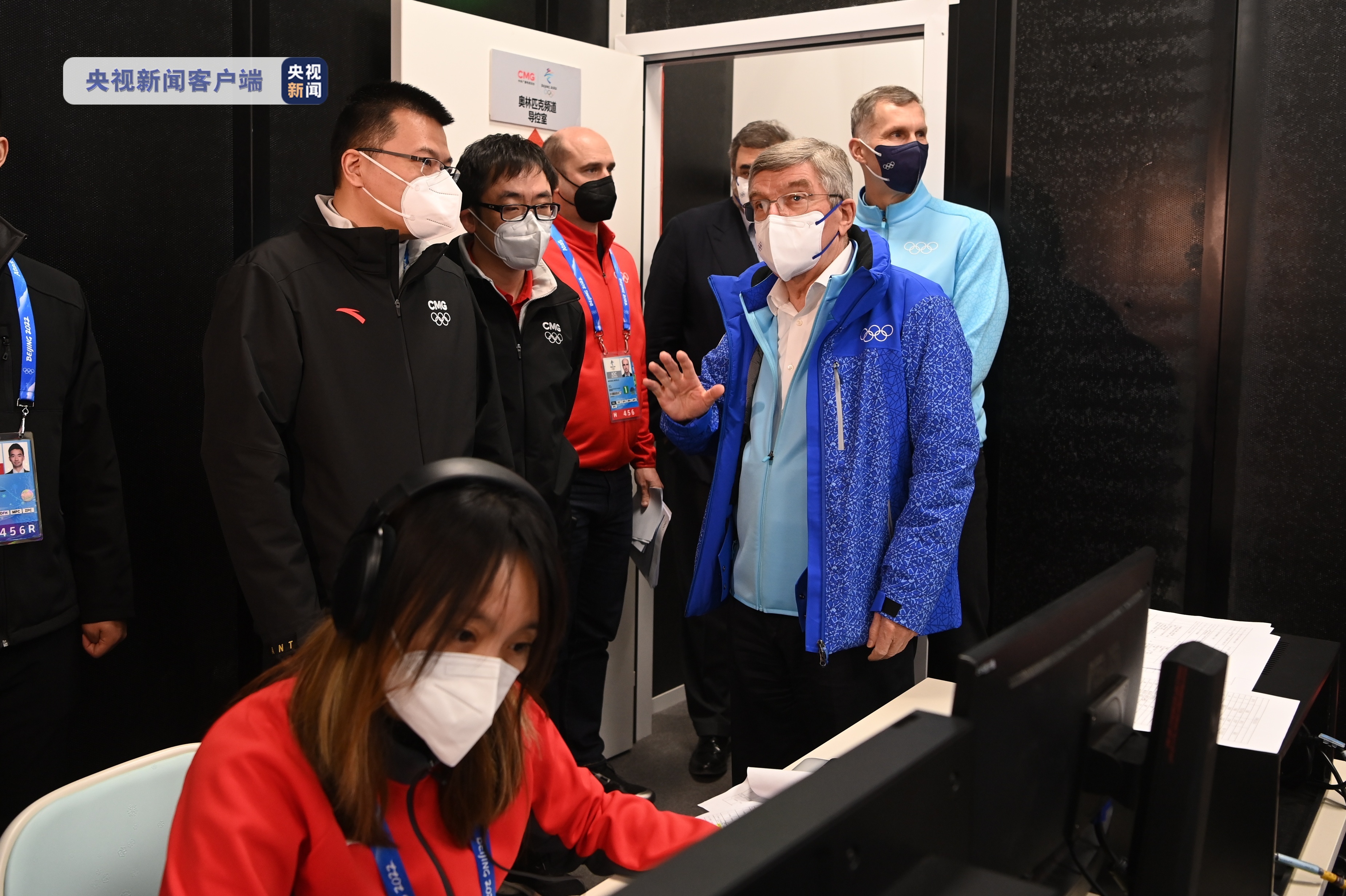 今天上午,国际奥委会主席巴赫参观了中央广播电视总台冬奥会前方转播报道制作中心,并接受了总台独家专访。巴赫主席一行上午10:20抵达中央广播电视总台办公区设在国际广播中心的制播区,参观了解总台前方报道制作情况。在制播区门口,巴赫主席一行详细了解奥林匹克频道播出运转情况,高度评价奥林匹克频道开播以来在奥林匹克运动、文化传播上做出的巨大努力;在编辑岛,了解总台冬奥会全4K制作域工作情况,并饶有兴趣地听取总台8K频道等冬奥会转播报道技术创新介绍。在奥林匹克频道播出导控间,巴赫主席向大家问好,勉励大家努力工作,圆满完成冬奥会后续报道工作。