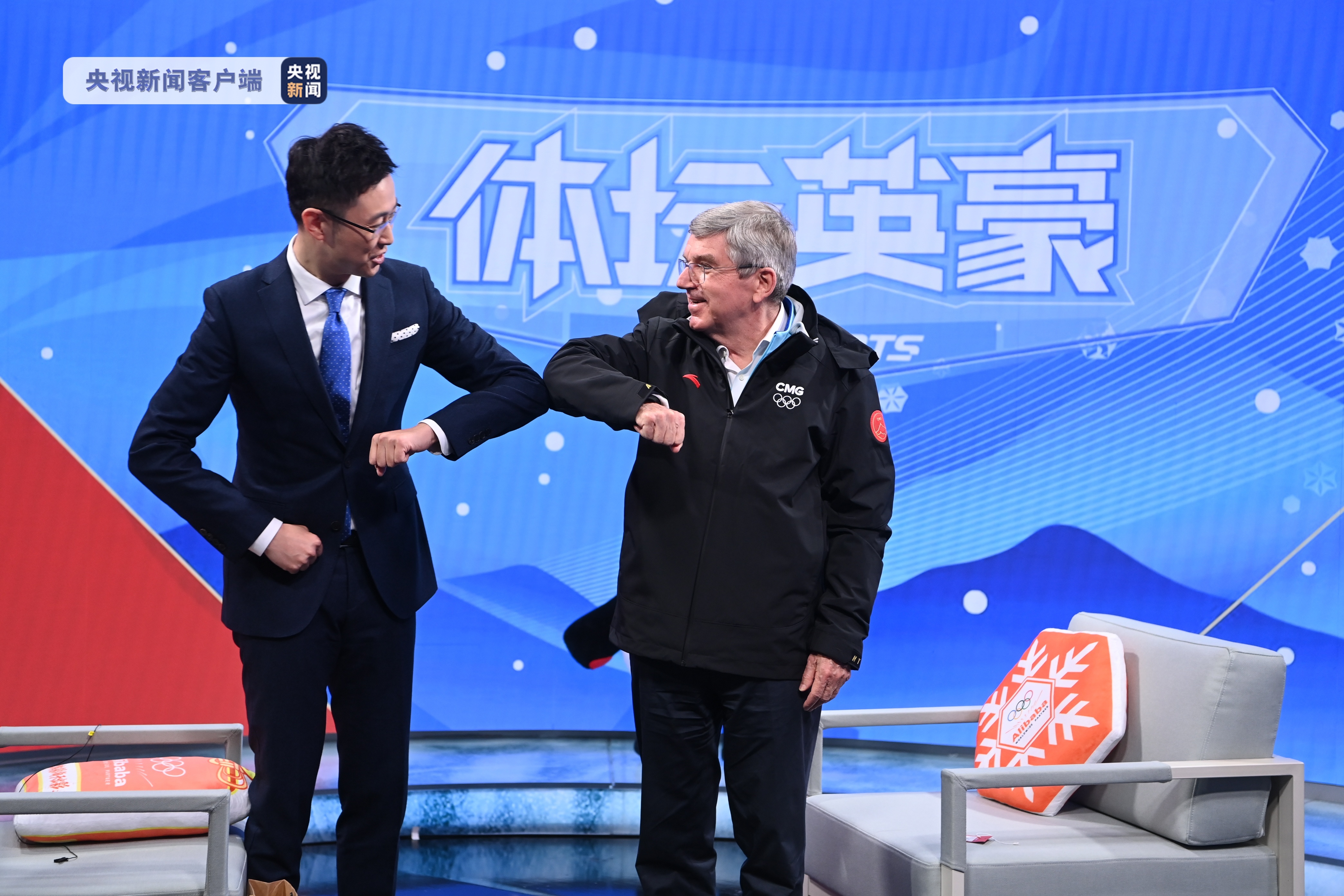 随后,巴赫在前方演播室接受了总台独家专访,并向中国观众致以新年问候。专访中,巴赫主席盛赞北京作为双奥之城为奥林匹克运动做出的特殊贡献,并对总台对于冬奥会报道的倾情投入给予了高度的肯定。访谈结束,巴赫主席穿上总台前方报道团工作制服,并向总台致以谢意。