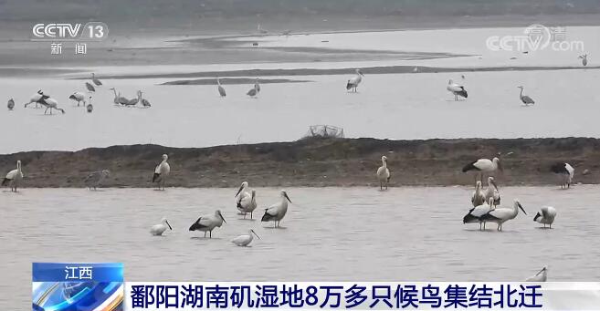 随着气温回升,越冬候鸟也将踏上北归之旅。近日,在江西鄱阳湖南矶湿地,成群的大雁、野鸭、东方白鹳和白琵鹭等越冬候鸟开始集结,等待暖湿气流向北迁徙。