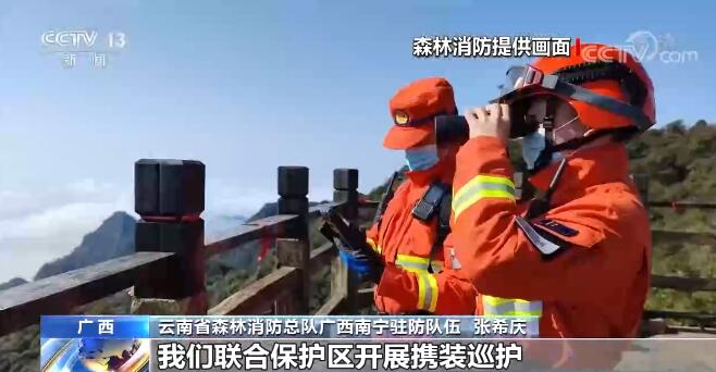 云南省森林消防总队广西南宁驻防队伍 张希庆:最近,野外踏青人员增多,发生森林火灾风险加大。我们联合保护区开展携装巡护,把力量前置到重点林区,最大限度消除火灾隐患,一旦遇有突发火情能够快速处置。