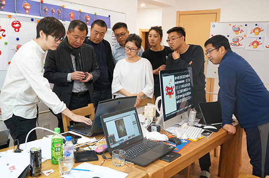 主创团队在讨论“雪容融”形象设计方案。 受访者供图