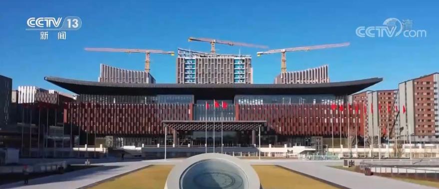 在雄安新区容东片区,眼前这个建筑群是有“城市会客厅”之称的雄安商务服务中心,它是雄安首个标志性城市综合体,是承接北京非首都功能疏解和北京先期入驻企业的职住一体综合园区。商务服务中心一共有12栋建筑,中心位置的这座“以中为主、中西合璧、古今交融”的建筑是其中的会展中心,它集结了绿色建筑、智能化等诸多创新成果。