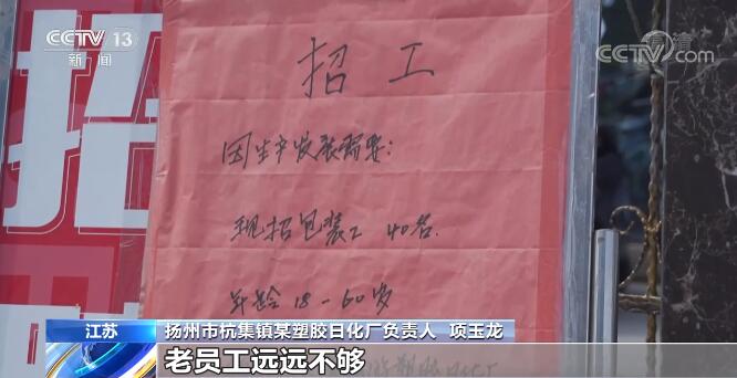 江苏扬州市某旅游塑胶日化厂负责人 项玉龙:刚刚接到一批今年外贸的第一批订单,老员工远远不够。