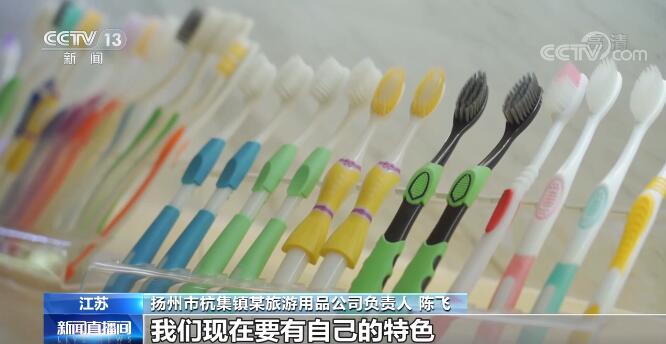 江苏扬州市某旅游用品公司负责人 陈飞:这款牙刷是我们公司针对电商渠道研发的一款全新产品,刷丝达到了1万根,保证了刷丝柔软度的同时,也保证了一定的回弹力,我们卖得很好。传统做产品是根据酒店的要求,酒店要求做什么我们做什么,几乎大同小异、没有特色。我们现在要有自己的特色,要有自己的品牌。