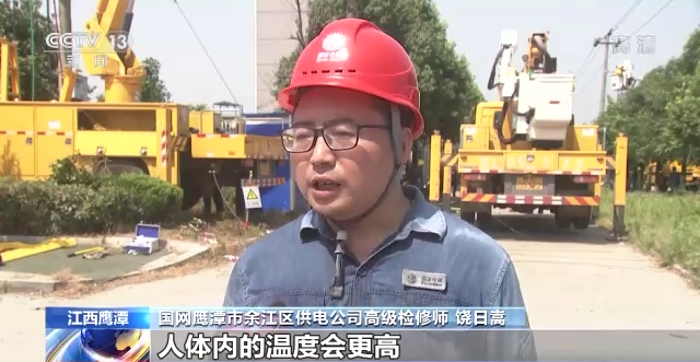 国网鹰潭市余江区供电公司高级检修师 饶日嵩:绝缘服的话是在外面再套了一层这个屏蔽的,所以我们的实际上人体内的温度会更高。对我们的作业人员来讲,是一个很大的挑战。绝缘服的话是在外面再套了一层这个屏蔽的,所以我们的实际上人体内的温度会更高。对我们的作业人员来讲,是一个很大的挑战。
