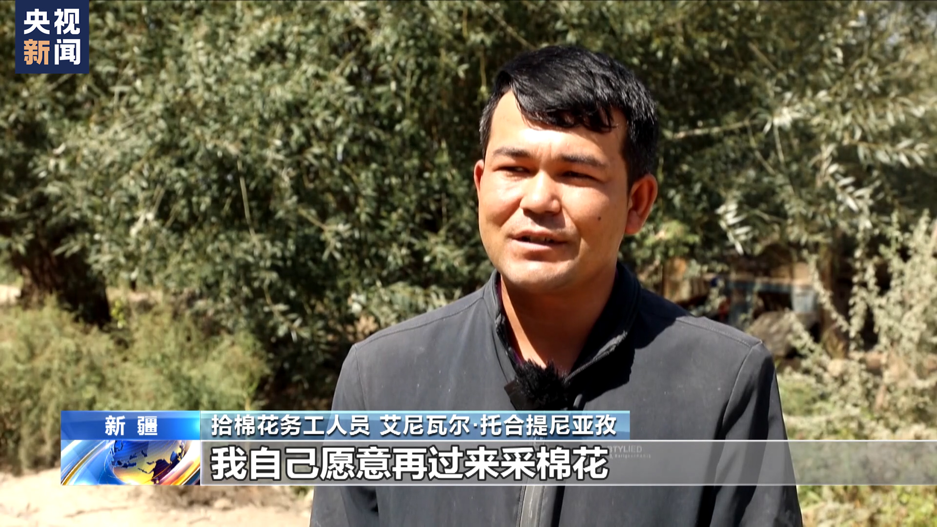 老家在和田的艾尼瓦尔·托合提尼亚孜,去年只干了40天,就赚了1万多元,对此他很开心,并表示“愿意再过来采棉花”:摘棉花是收入比较多,我自己愿意再过来采棉花,我自己也是很开心,高兴得很。