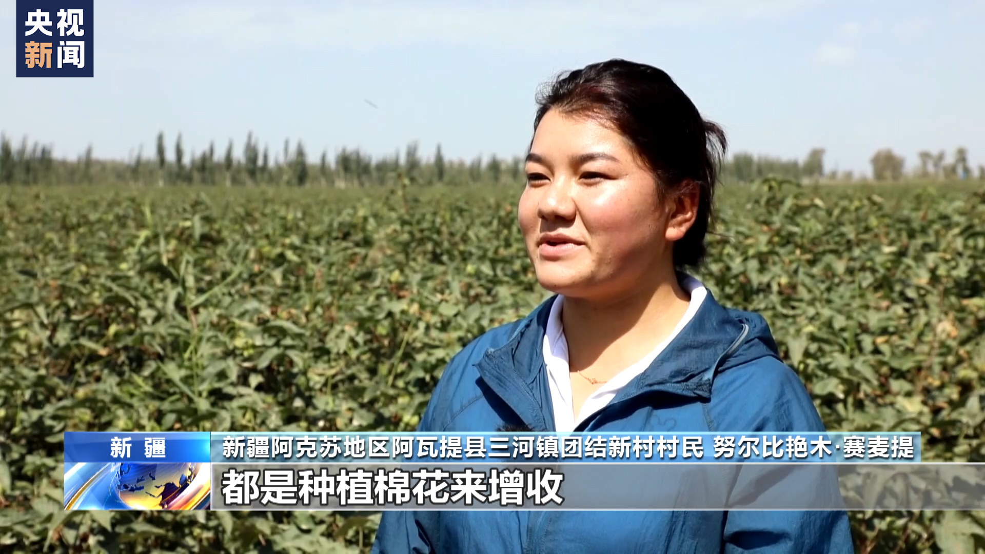 阿克苏地区阿瓦提县三河镇团结新村的村民、棉花种植户努尔比艳木·赛麦提每天都会到田间查看棉花长势,她向记者介绍了村里棉花种植和收入情况:
