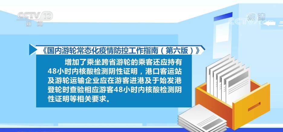增加了乘坐跨省游轮的乘客还应持有48小时内核酸检测阴性证明,港口客运站及游轮运输企业应在游客进港及于始发港登轮时查验相应游客48小时内核酸检测阴性证明等相关要求。