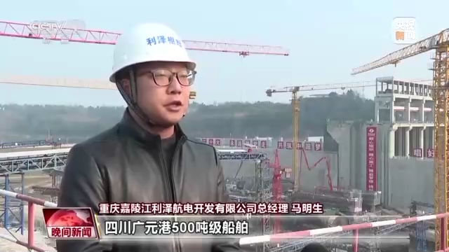 重庆嘉陵江利泽航电开发有限公司总经理 马明生:利泽航运枢纽全面建成后,四川广元港500吨级船舶,1000吨级船队可以通过我们这里实现通江达海。