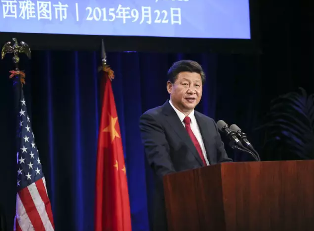 图为:2015年9月22日,国家主席习近平在美国华盛顿州西雅图市出席华盛顿州当地政府和美国友好团体联合举行的欢迎宴会并发表演讲。