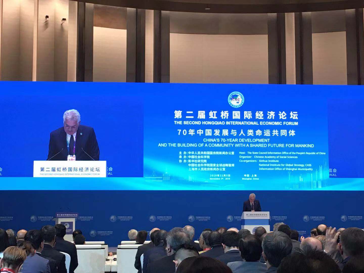 第二届虹桥国际经济论坛分论坛E——70年中国发展与人类命运共同体今天下午在国家会议中心(上海)举行。