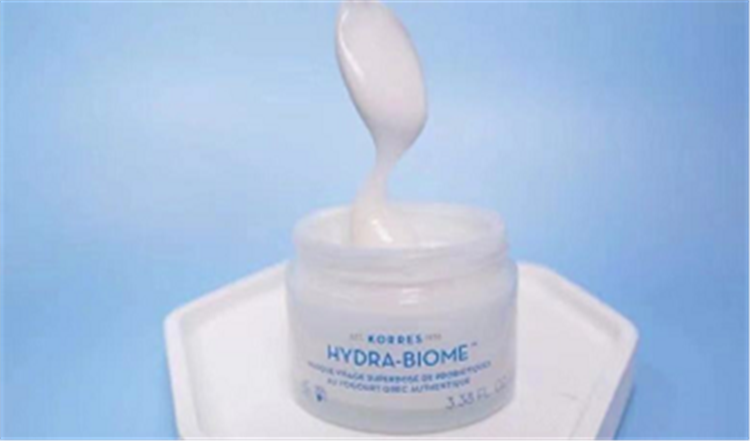 打开该系列其中一瓶化妆品的盖子,酸奶的味道扑鼻而来。这一套护肤系列是希腊酸奶发酵产物,富含乳糖、蛋白质、维生素等营养成分,帮助强韧肌肤屏障。整套护肤系列涵盖了富含希腊酸奶氨基酸洁面、益生元肌活修护水凝霜、益生元修护多效面膜、密集修护睡眠面膜以及益生元修护保湿乳。