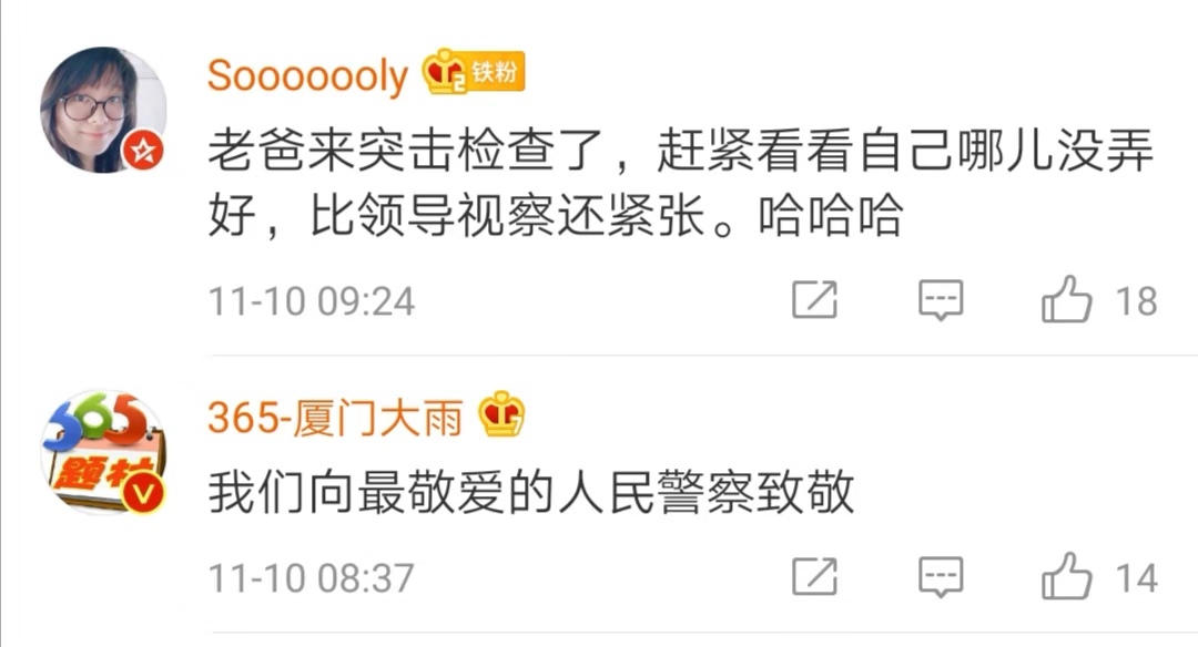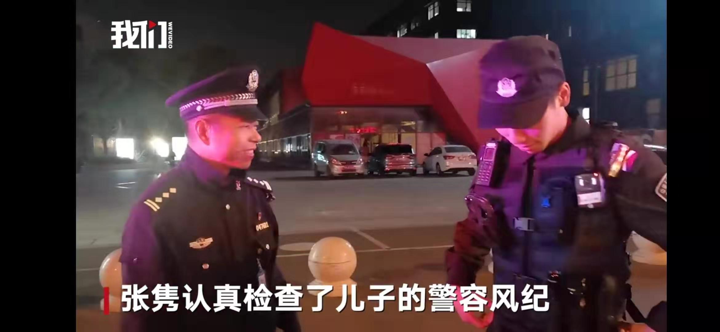 据新京报报道,11月5日,第二届进博会在上海开幕,张隽是嘉定公安分局督察支队的民警,他当天晚上和支队同事一起对江桥地区所有参战岗位上民警的警容风纪、履职情况进行现场督导。没想到的是,在检查途中意外遇到了正在执勤的儿子特警张昊文。父子俩平时聚少离多,张隽还是第一次见到岗位上的儿子,儿子的突然出现,他也感到非常意外。