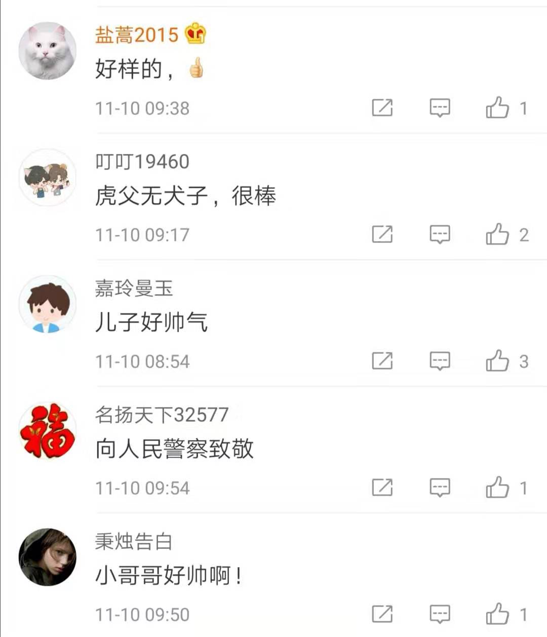 网友被这一幕浓浓的父子之情感动,纷纷点赞。
