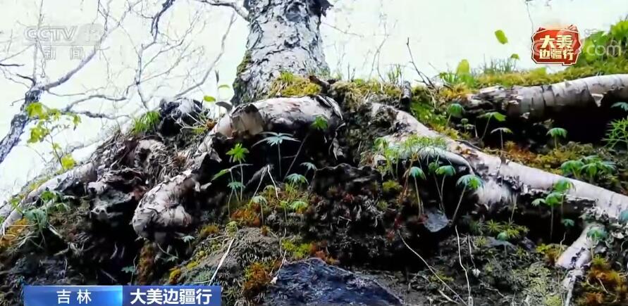 总台记者 陈春晓:岳桦林带的海拔是在1700米—2100米之间,我现在所走的这条栈道平时是对游客开放的,两边都是岳桦树。我们先看看这一边,大家看岳桦树的根部紧紧地裹着岩石。