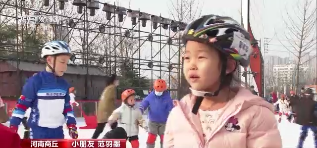 小朋友 范羽墨:我是第二次来滑冰了,第一次有点害怕,第二次一点都不害怕了,我感觉很开心。
