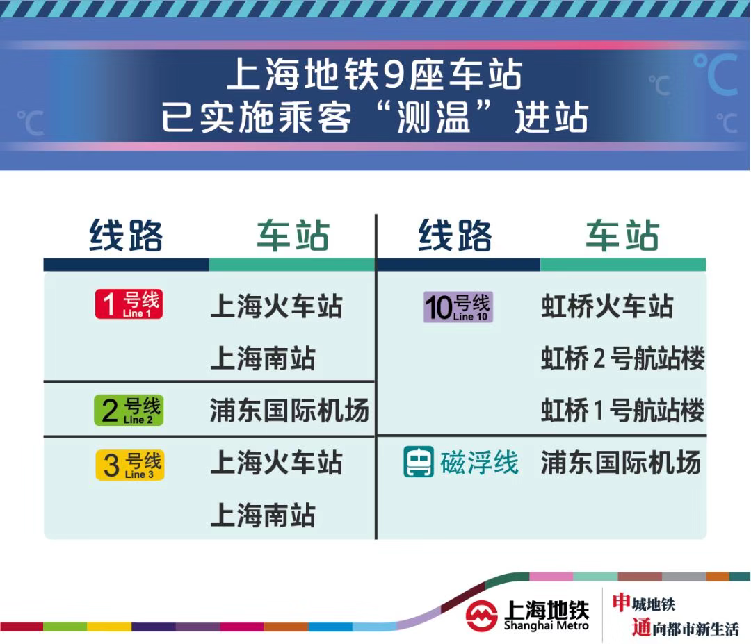 2月6日,上海地铁对记者表示,为切实做好上海市疫情防控工作,应对春运返程客流及复工上班客流,上海地铁自2月3日率先在9座车站启动乘客测温进站工作后,上海地铁即日起再新增51座车站实施乘客“测温”进站,提请广大乘客配合支持。