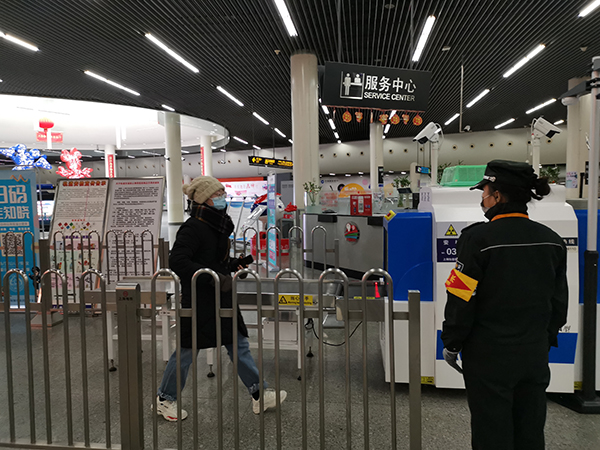 杨杰介绍,针对这次疫情,车站要求所有的员工戴口罩,客服中心工作人员要接触乘客的票卡,因此对他们发放了手套,每位员工上班第一件事是测体温,并询问有无接触史。目前,车站每日的大面积消毒5次,隔离区目前有3个,每个出入口都有显示屏播放疫情防控的提示。1月底曾发生一例乘客呕吐事件,当时,乘客就先被带去隔离区,120来接走这名乘客,后经诊断排除了新冠肺炎。