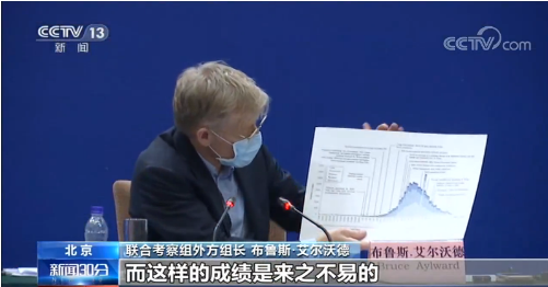 联合考察组外方组长 布鲁斯·艾尔沃德:中间那个比较平缓的线段就表明是采取了非常有力的防控措施,这样的改变对于中国来说,对于整个世界来说都是极大的贡献,因为这些病毒在某些情况下会迅速暴发,且病例数会急速攀升。
