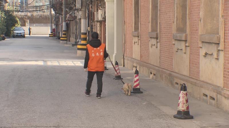 志愿者为居家隔离主人照顾爱犬。 彭旭卉 图