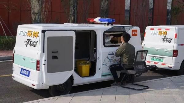为了提高采样效率,这段时间,许多移动核酸采样车也开进上海的社区、开上街头。驰援上海防疫的十多辆核酸检测车,已经在浦东、闵行、长宁等区域工作了十几天。这些车辆车身轻巧,可以在老旧小区里轻松通过,还配有挡板和紫外线消毒功能。