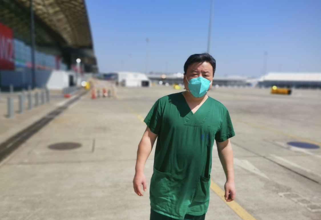夏家安医生是武汉金银潭医院主任,他现在负责新国博方舱部分危重症患者的救治工作。4月2日接到援沪命令后,4月3日夏家安就首批抵达上海。