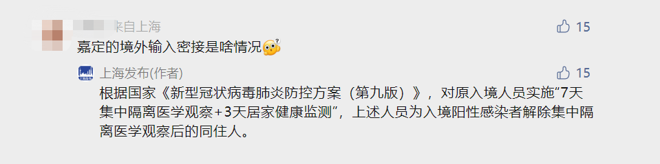 在评论区有网友提问:嘉定的境外输入密接是啥情况?