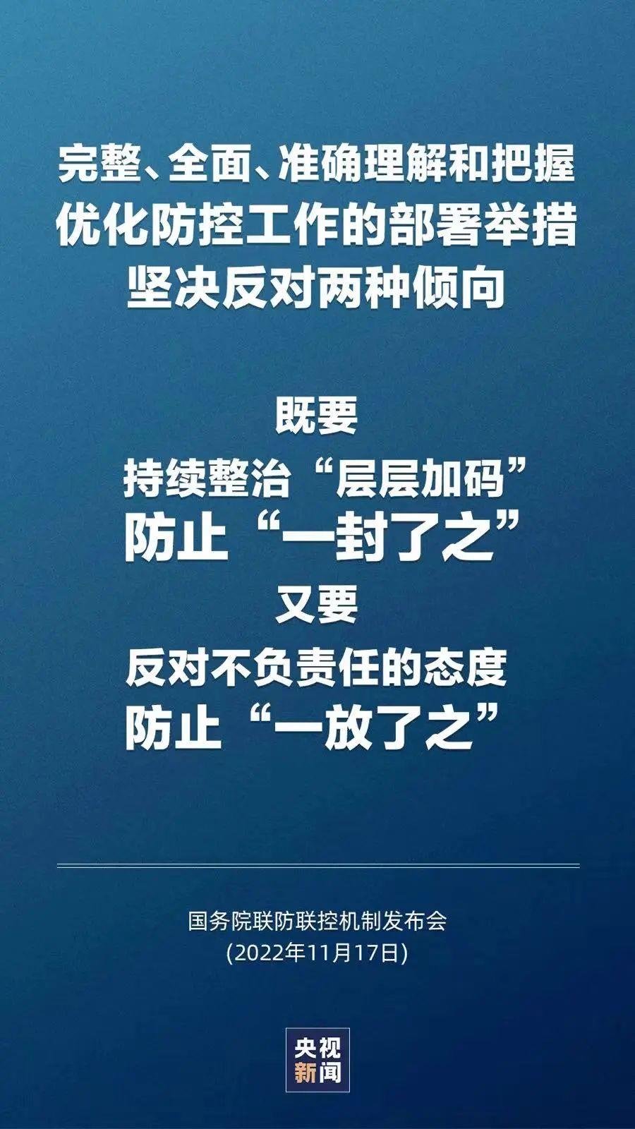 抗疫斗争很复杂、很艰巨,而且有反复性,我们也在不断动态优化调整疫情防控措施。各地如何完整、准确、全面贯彻落实相关部署,我们每个人如何正确理解这些措施?必须坚持的三个“坚定不移”和必须坚决反对的两种倾向,给出了明确的标准。