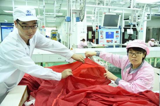 在这一思路引导下,研制团队将目光投向了航天器降落伞同性质材料。该材料所用高强锦丝长丝的线密度可以达到20旦或更小,粗细仅有头发直径的三分之一,但强度可达普通民用锦丝强度的两倍。最终选取的高强锦丝绸,比神舟飞船降落伞材料强度高17%,重量降低了15%。