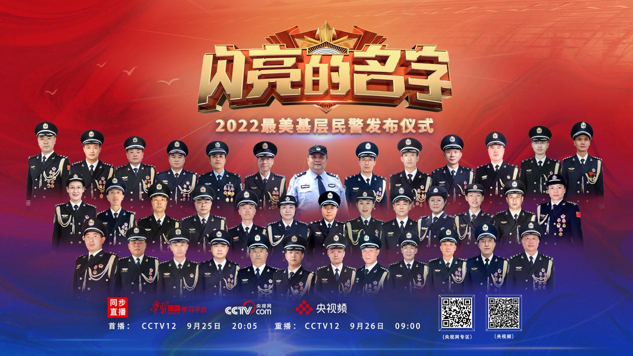《闪亮的名字——2022最美基层民警发布仪式》将在中央广播电视总台央视社会与法频道(CCTV-12)9月25日20:05首播,9月26日09:00重播,节目播出期间,学习强国、央视网、央视频等新媒体平台同步直播。