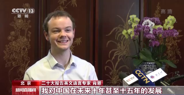 二十大报告英文语言专家 肖恩:我对中国在未来十年甚至十五年的发展充满期待。中国正在发展自主科技创新,我认为报告中重点强调的教育与人才等支撑,将是达成这个目标的重要一环。