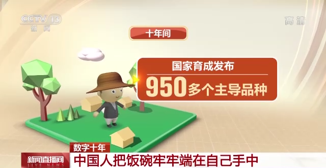 十年间,国家育成发布了950多个主导品种,播撒向自然资源禀赋不足的地带。耐盐碱水稻、抗倒伏玉米、耐旱小麦等一大批优质品种,让盐碱地、丘陵山地、干旱土地之上的每一块土地都有了更好的产出。目前,粮食作物良种基本实现全覆盖,自主选育品种面积占比超过95%,做到了中国粮主要用中国种。