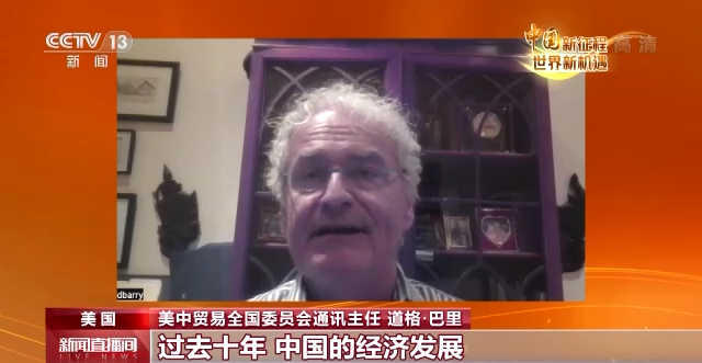 美中贸易全国委员会通讯主任 道格·巴里:过去十年,中国的经济发展是最显著的成就之一,中国的一些运输系统、大型物流系统、基础设施是世界级的,中国因此成为消费品的主要出口国,而且中国为很多人提供了更好的教育,医疗保健也得到了改善。取得了如此大的进步是一项了不起的成就。
